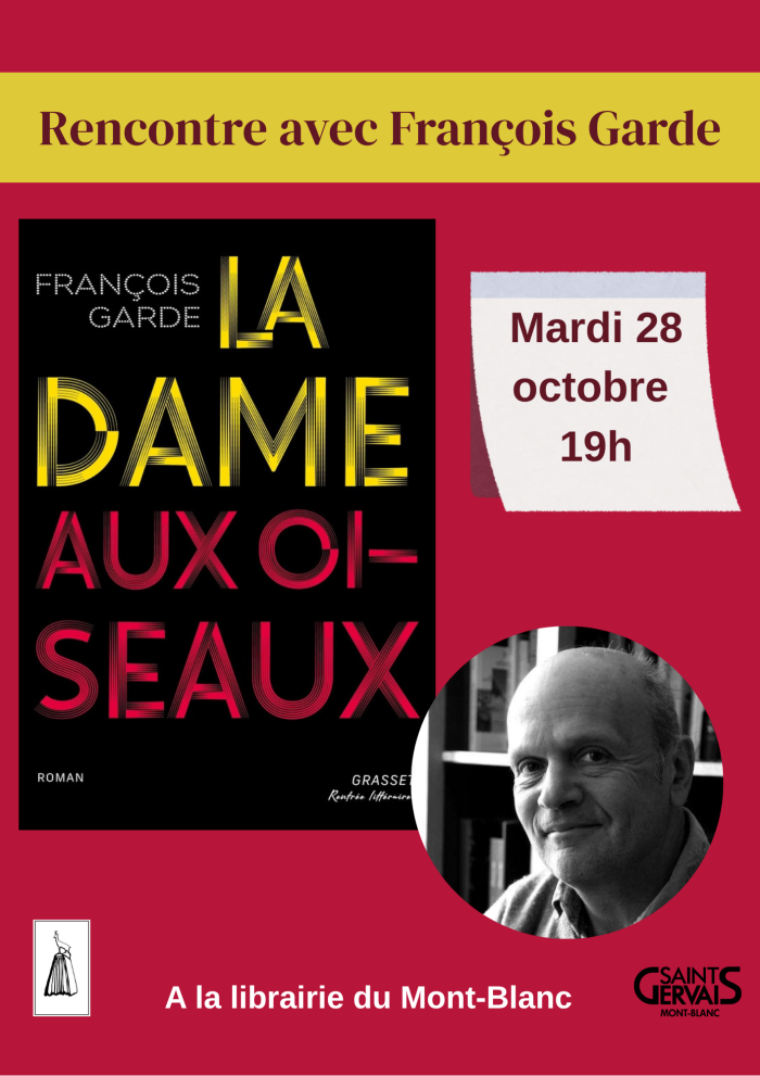 Nous vous proposons dès la fin du mois de venir rencontrer François Garde pour une présentation et une discussion autour de son dernier roman, La dame aux oiseaux, titre important de cette rentrée littéraire. Puis, nous recevrons Bruno Dupety, mi-décembre, pour une présentation de son magnifique ouvrage, Mont Blanc, le regard des peintres, que vous pourrez découvrir chez nous dès le 5 novembre.